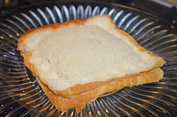- Add 2 tbsp of filling to a slice of bread. You will have enough pie filling to double this if you prefer more filling 😉