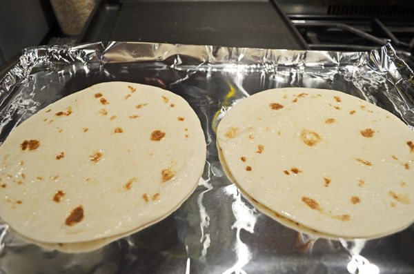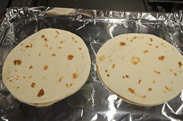 - Rub about 3-4 drops of olive oil over each tortilla.
