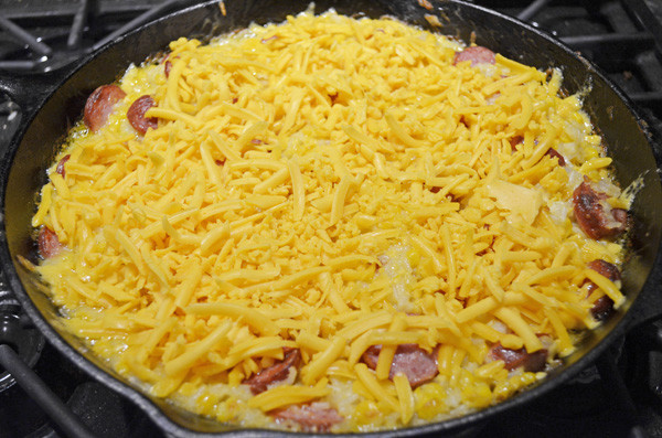 - Sprinkle shredded cheese on top and let stand for 10 minutes to cool and for cheese to melt.