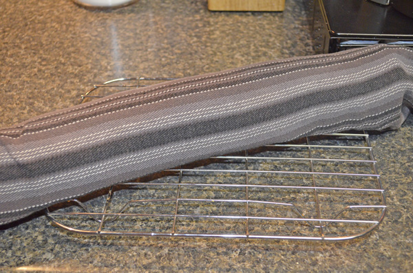• Trim the edges if necessary. Starting with the long side. tightly roll up cake with the cloth. Set on wire rack to cool, seam-side down. Allow to cool 30 minutes.