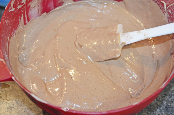 • In a medium bowl, mix flour, cocoa powder, cornstarch, baking soda, baking powder and salt.