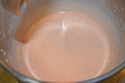 • Beat 3 eggs. Add in the flour, sugar & margarine. I use my mixer to mix it faster, but you can do the mixing in a sauce pan.