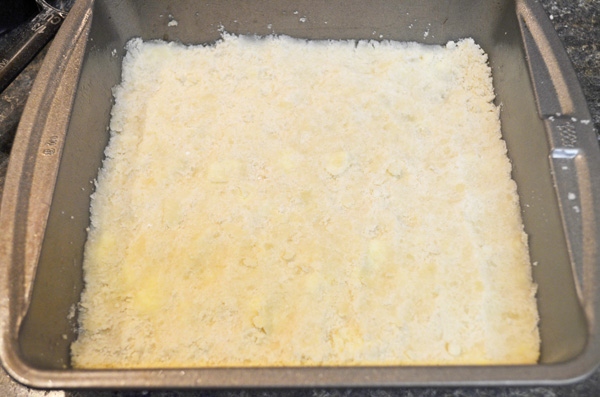 • Press flour mixture in the baking pan. Bake 15-20 minutes or until edges are a light brown.