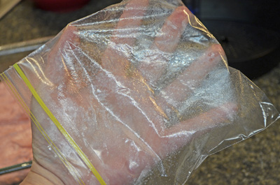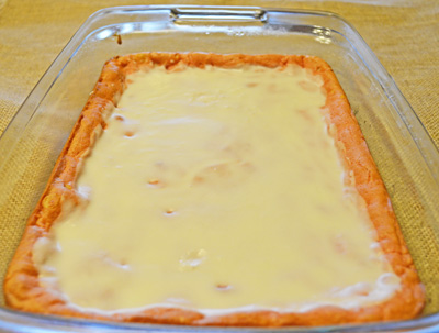 • Pour (if possible) into the 9×13 pan. The mixture is pretty thick. So, after you spoon the mixture in, either spray your hands to spread the mixture out, or put a baggie on your hand and spray then pat and spread.