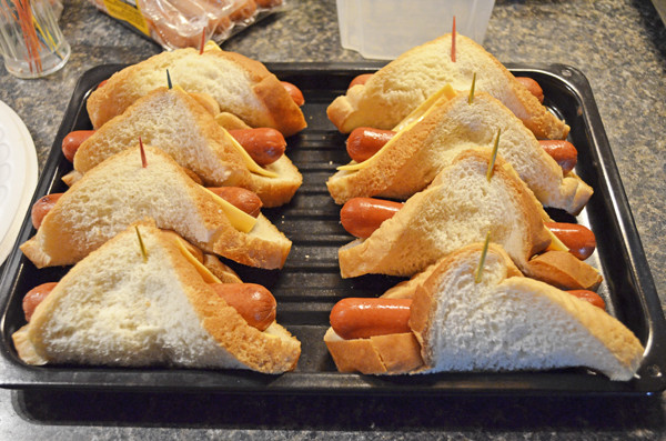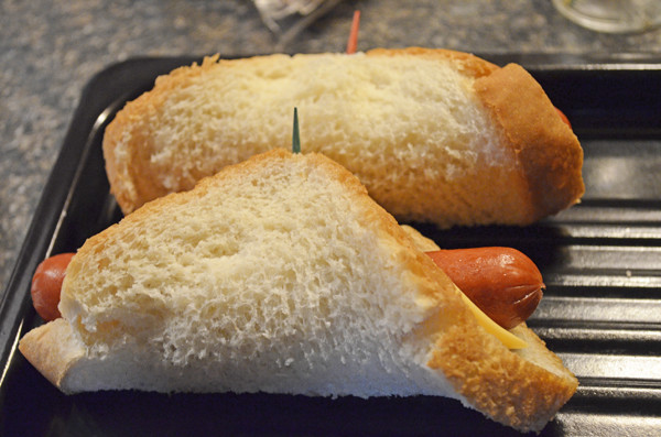 After the hot dog is cooked the way you like, throw it on some bread with cheese, or no cheese. Your call. Then fold it over and pop it in the oven. Great thing about these is I didn’t use my big oven. I used a toaster oven. Kept from heating my kitchen up as much when it was already in the 90’s outside. Yuck.